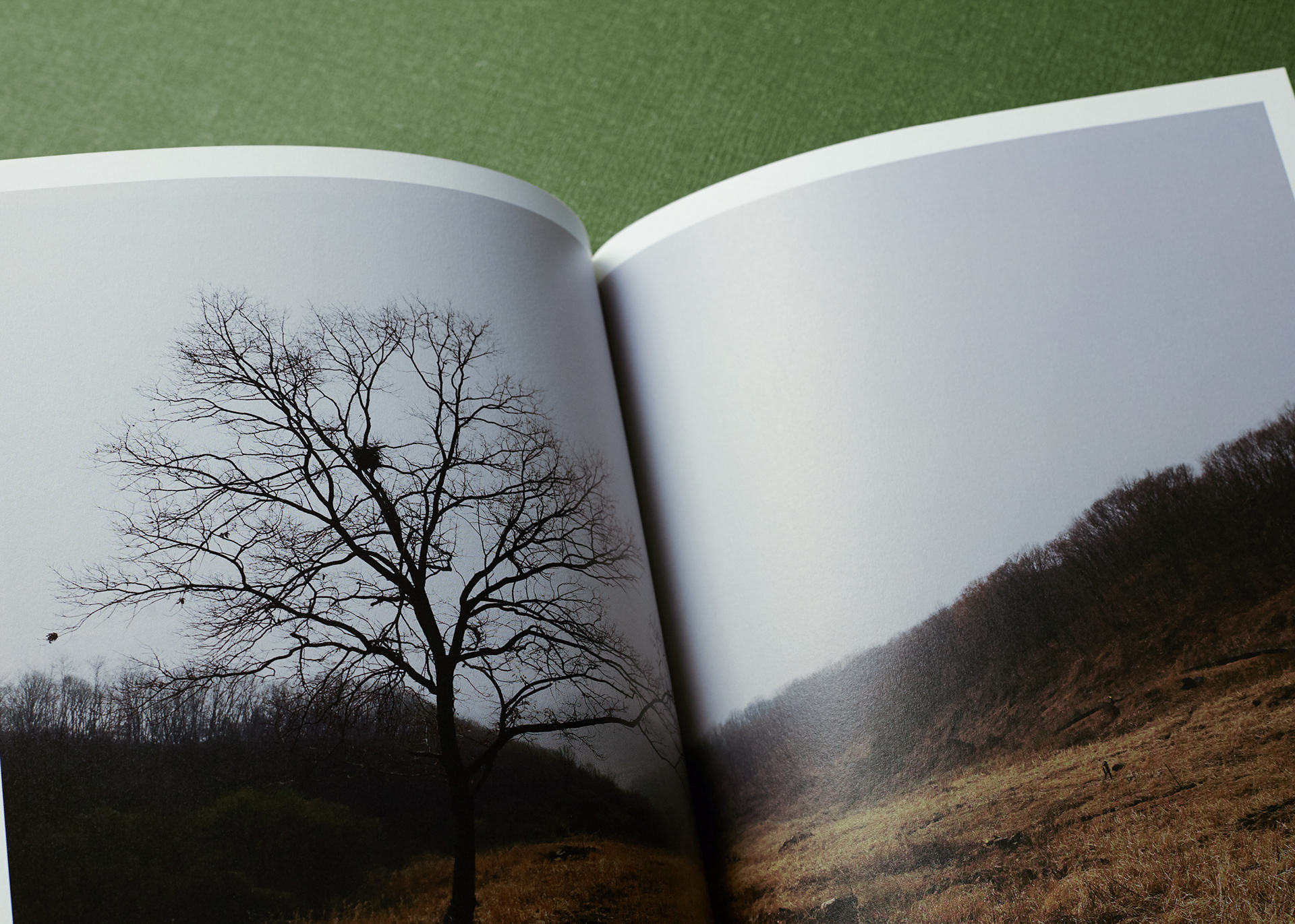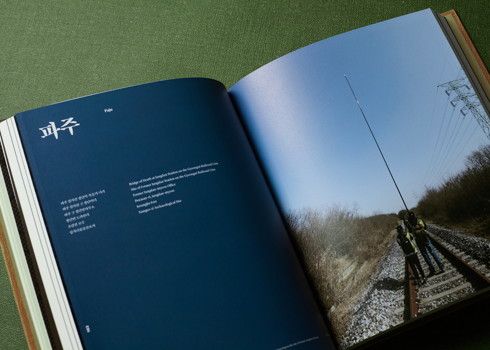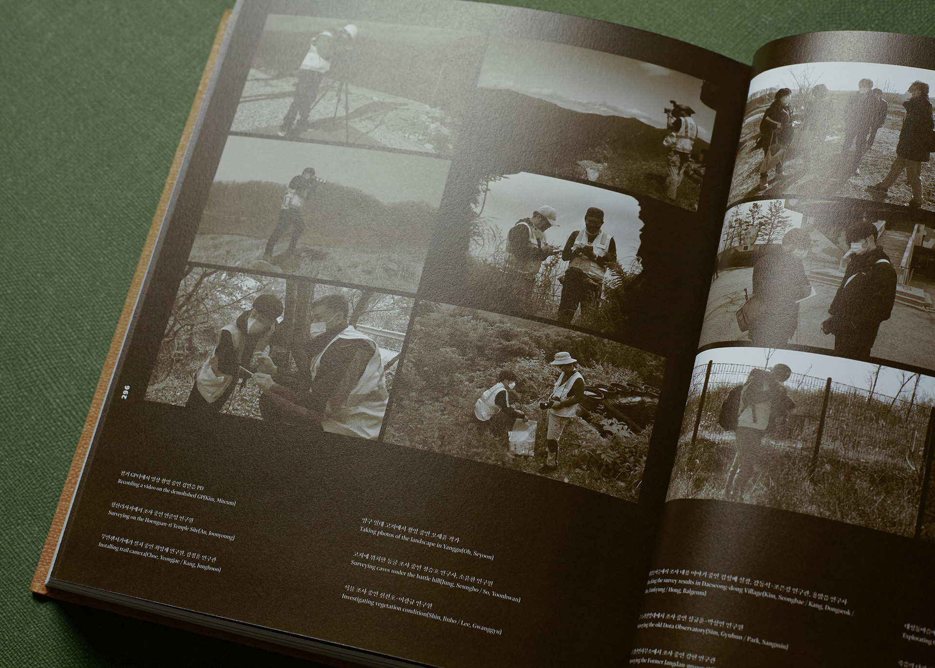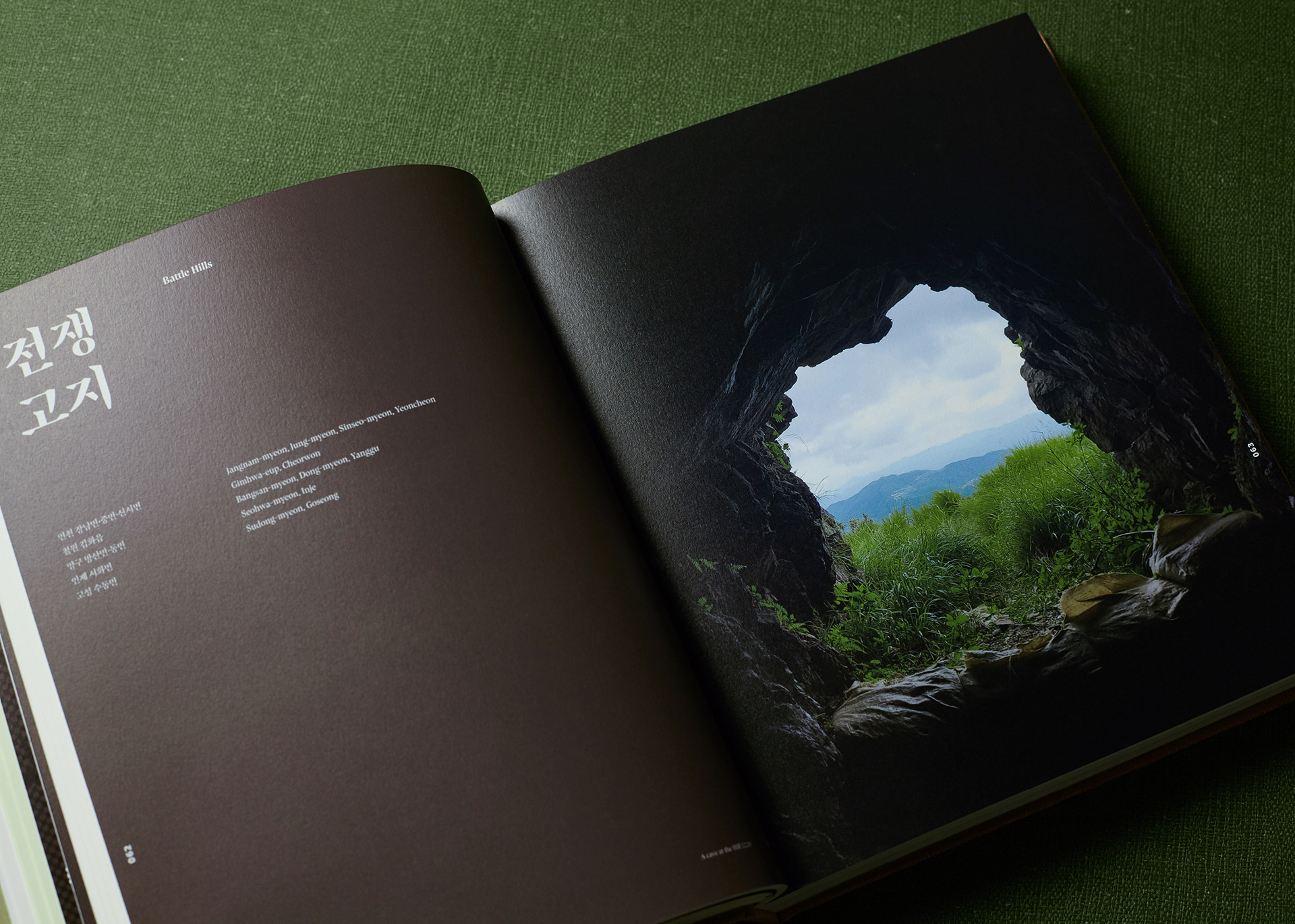This publication consists of two volumes. The first volume adopts a military green commonly used in standard defense color palettes, while the second uses a brown tone from the same range. The cover graphic is a simplified reinterpretation of a defense camouflage pattern frequently used in military contexts, designed with an expanding structure of dots, lines, and planes. The graphics of the two volumes are conceived to connect with each other, forming a unified symbolic representation of the Korean Demilitarized Zone (DMZ).